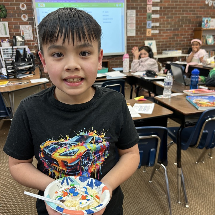 Mr. Holmes' class was thrilled to tie for 1st place in Guthridge's "March Madness" attendance competition. Thank you, Mr. Dixon, for the pizza!